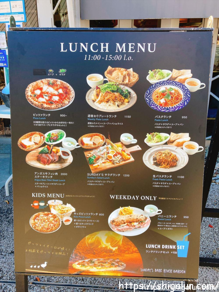 - サンデーズベイクリバーガーデン(SUNDAY’S BAKE RIVER GARDEN) のメニューは?