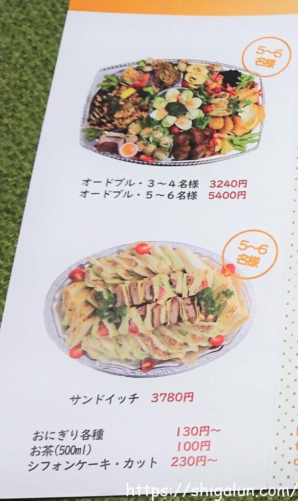 2日前からの予約が必要(*要確認)ですが、オードブル(写真参照・一例です↓)もされています。